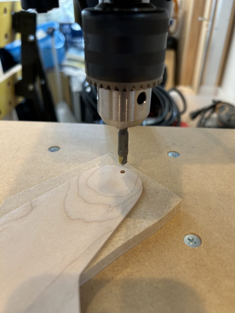 掘り込む深さの目印にマスキングテープを貼り、そこまでボール盤で皿取りします。