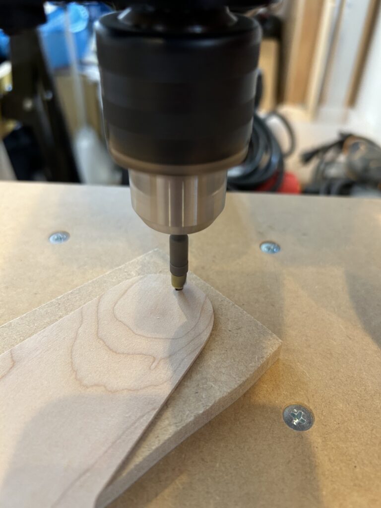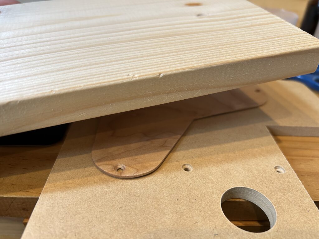 取り付けてあるMDF材の台は、大きな素材も乗せやすいようにして、彫刻位置も固定できるよう自分で作って取り付けています。