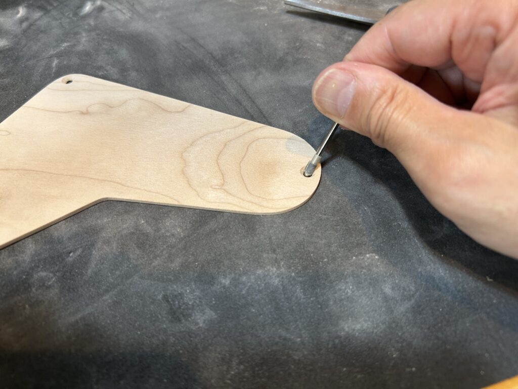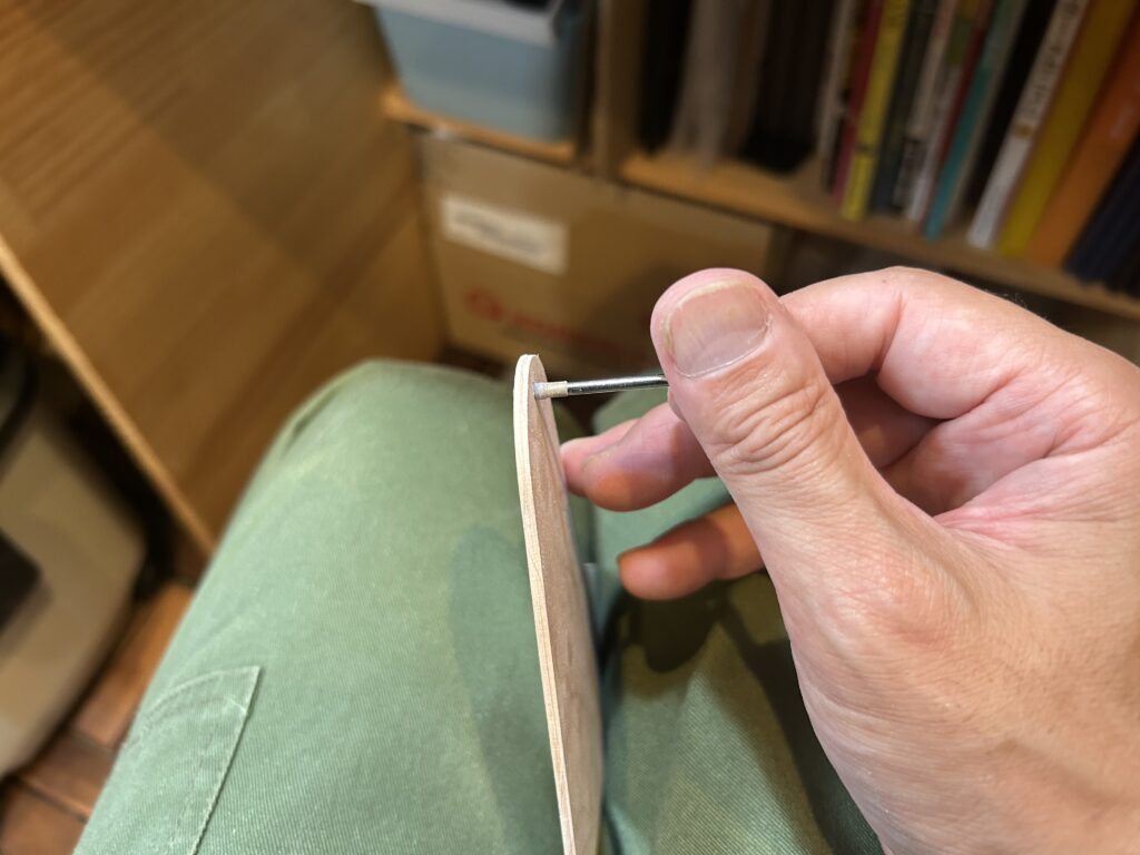 ネジ穴部分もデザインカッターで穴に沿ってくるっと回すようにカットします。