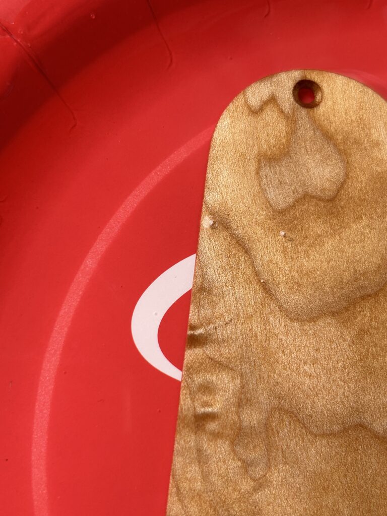 バックプレートが浸かる量の木固めエースを紙皿に出し、ドブっと漬けます。