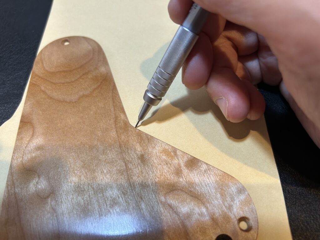 「エレキギターの木製バックプレートの制作② 〜成形→厚み出し編〜」では、テンプレートからバックプレートの形作るところまで制作しました。