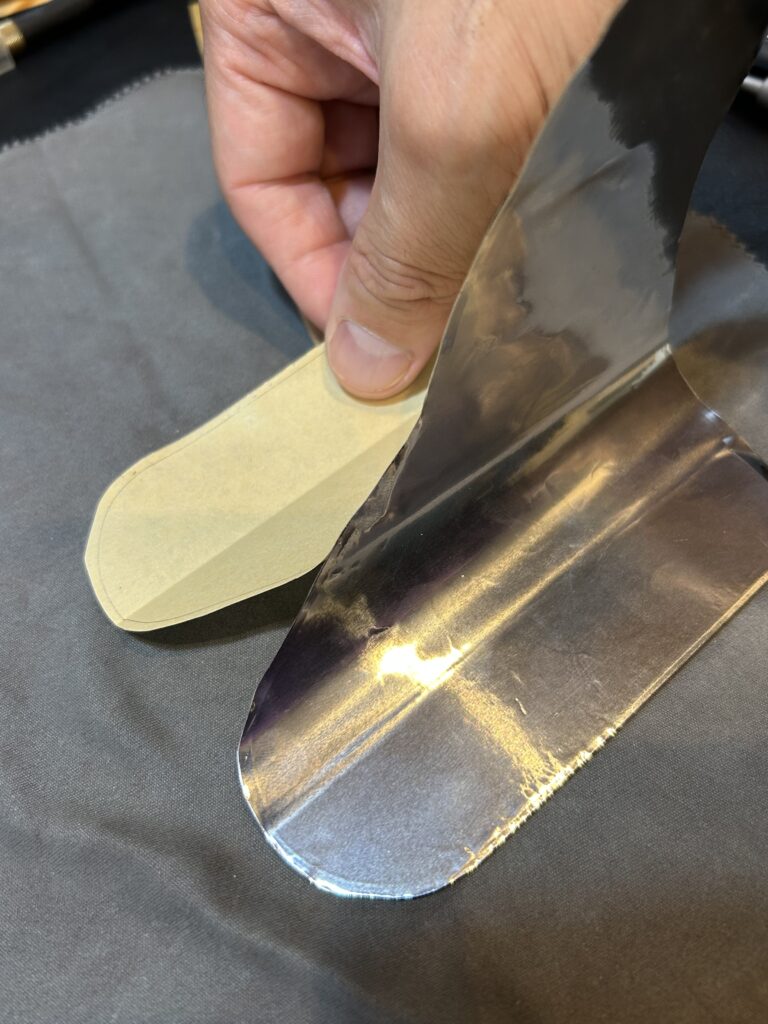 まずは、バックプレートの型をアルミシートの裏面へ書き込みます。
