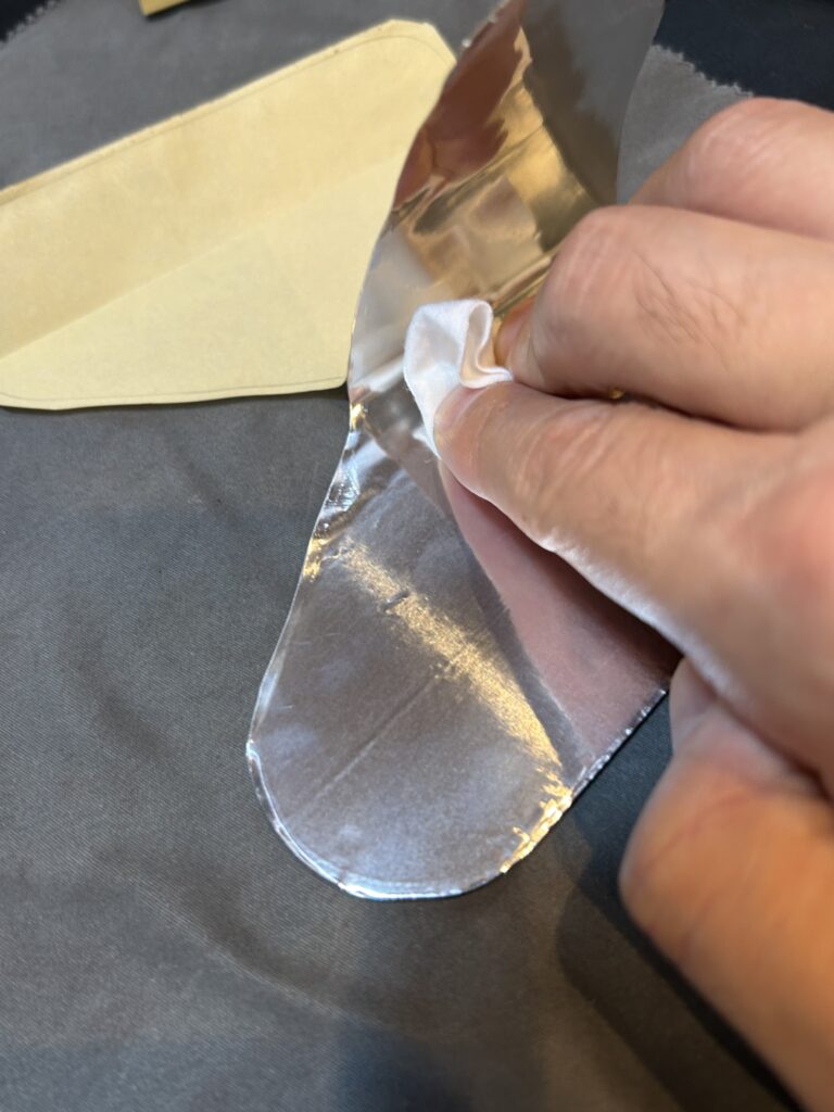 アルミシートの剥離紙を折り曲げて、湿布薬を貼る時の要領で貼っていきます。