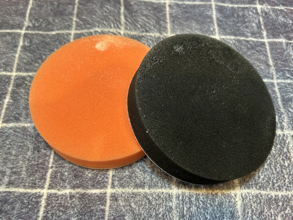 以前はウールバフを使用していましたが、少し力を入れて磨くと塗膜が削れてしまうので、それより研磨力が弱いスポンジバフを使うことにしました。