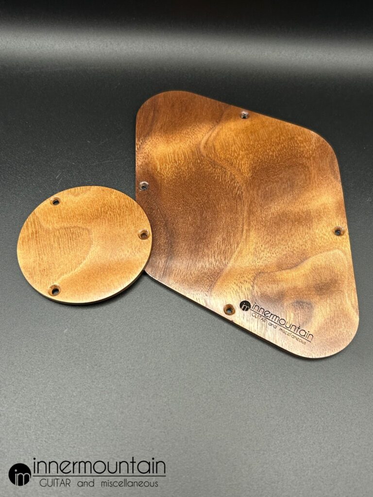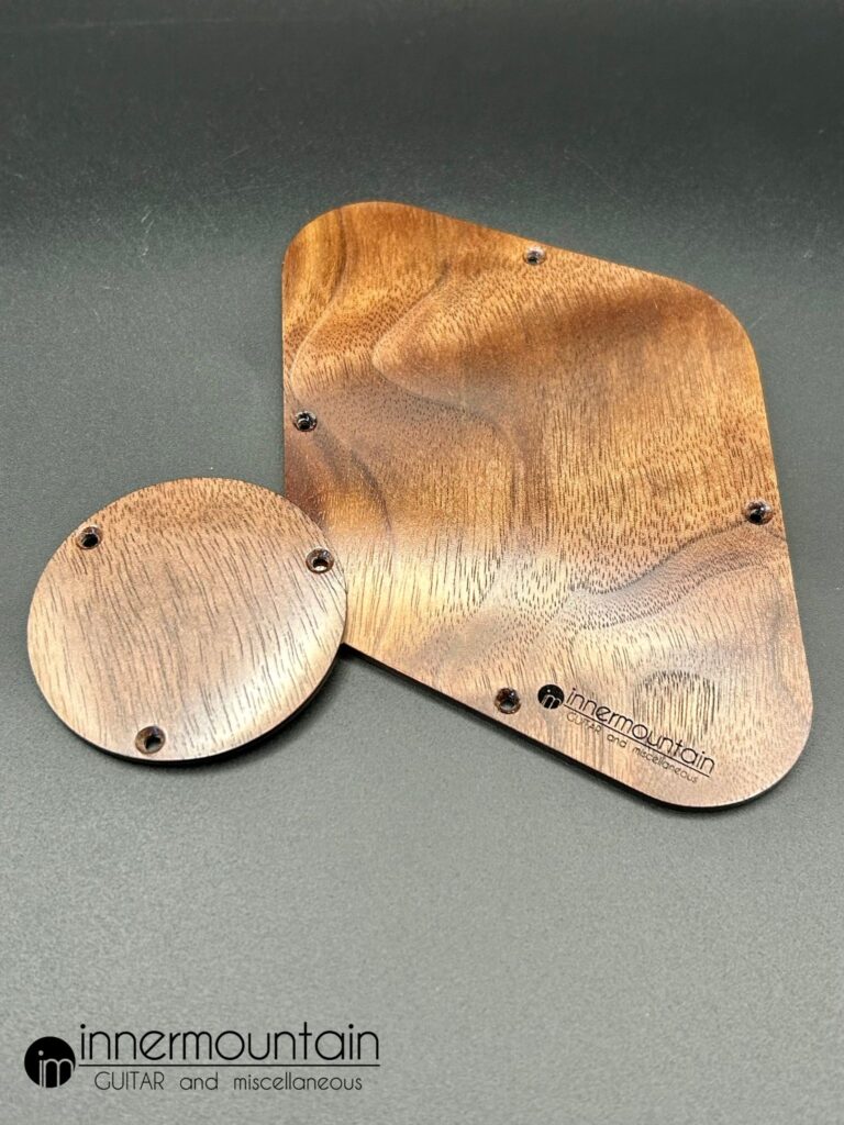 実際ギターに取り付けると、ウォールナットらしいブラウンがシックで落ち着いた印象になります。