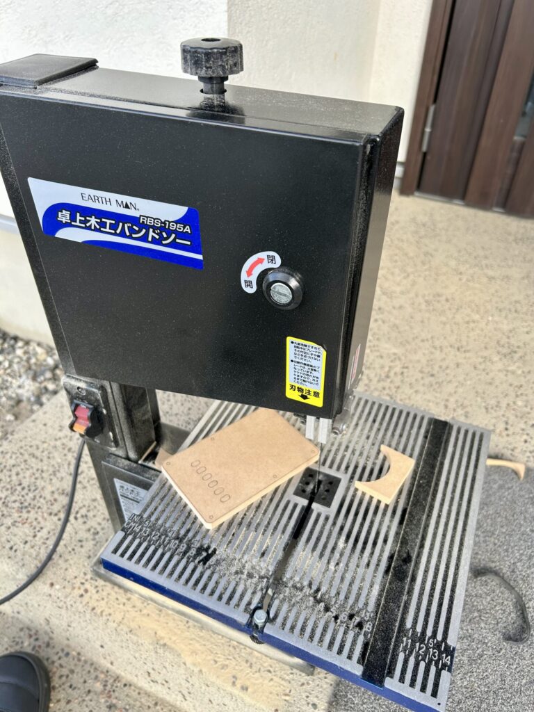 バックプレートのような小物の木工では、バンドソーがものすごく戦力になります。