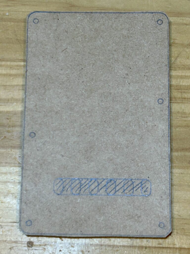 バックプレートをMDF板に書き込んだ時は、バックプレートの外周の外側に線を引いていることになります。