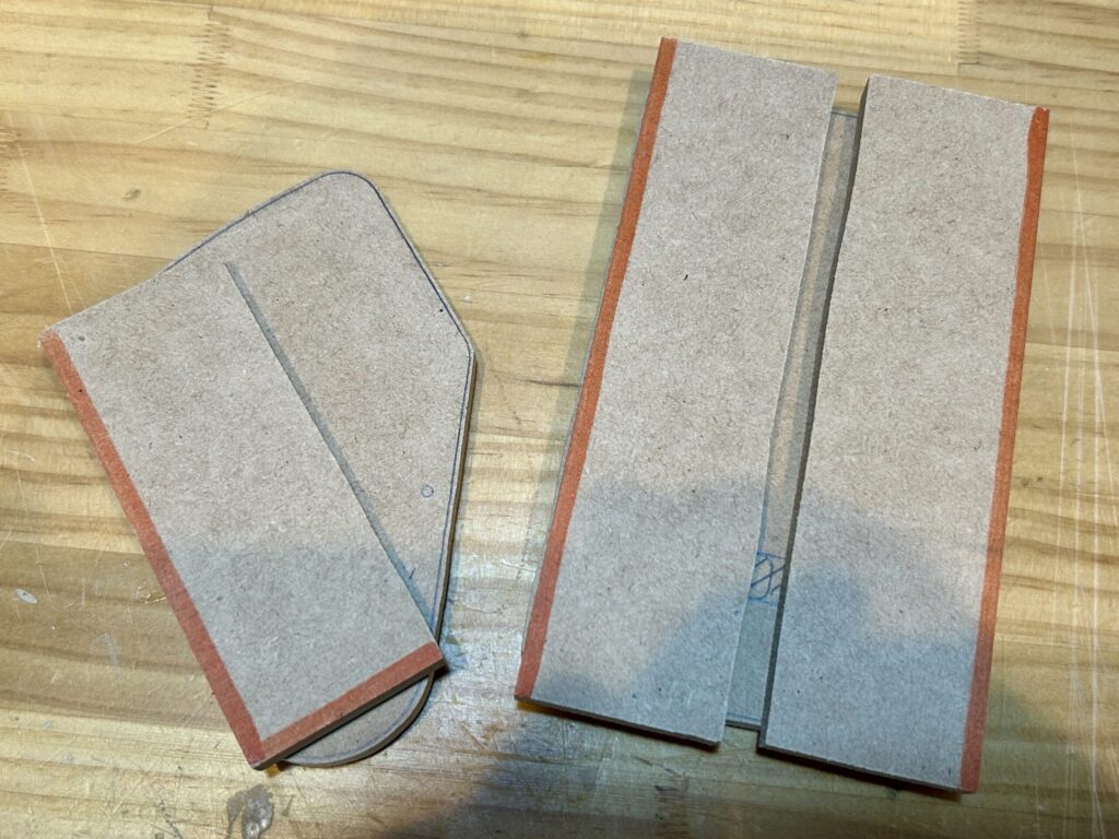 これなら直接材料に罫書きしてカットするのも一緒なんですが、テンプレートがあれば、どこかの工程で失敗しても作り直しが簡単ですので、テンプレート制作をおすすめします。
