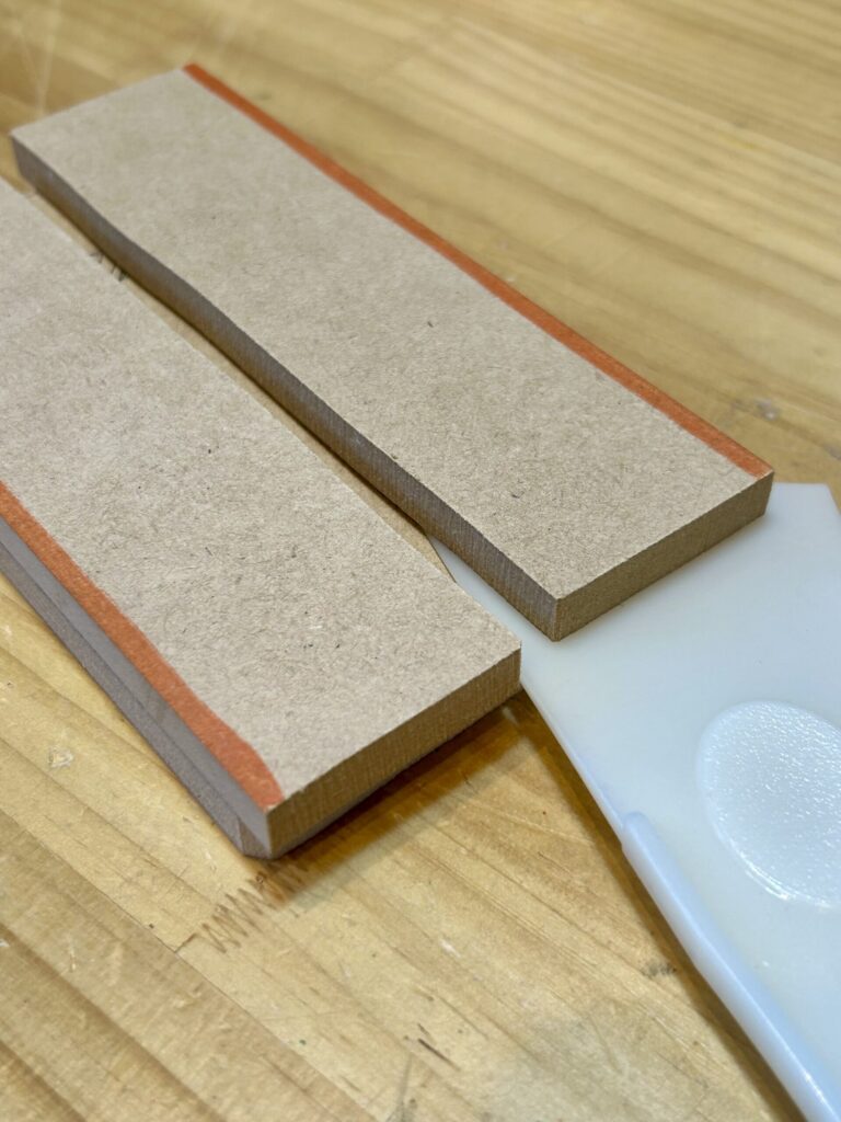 これ以上薄いMDF板だと、トリマーで材料を削る際1回に削り取る深さが厚くなりすぎて、トリマーに負荷がかかったり欠けの原因にもなります。