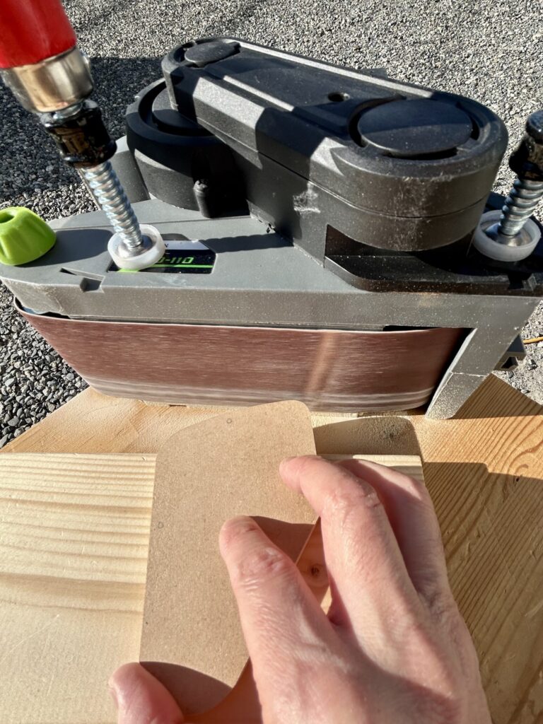 ベルトサンダーを横向きに置き、テンプレートの側面が直角にサンディングできるようにします。