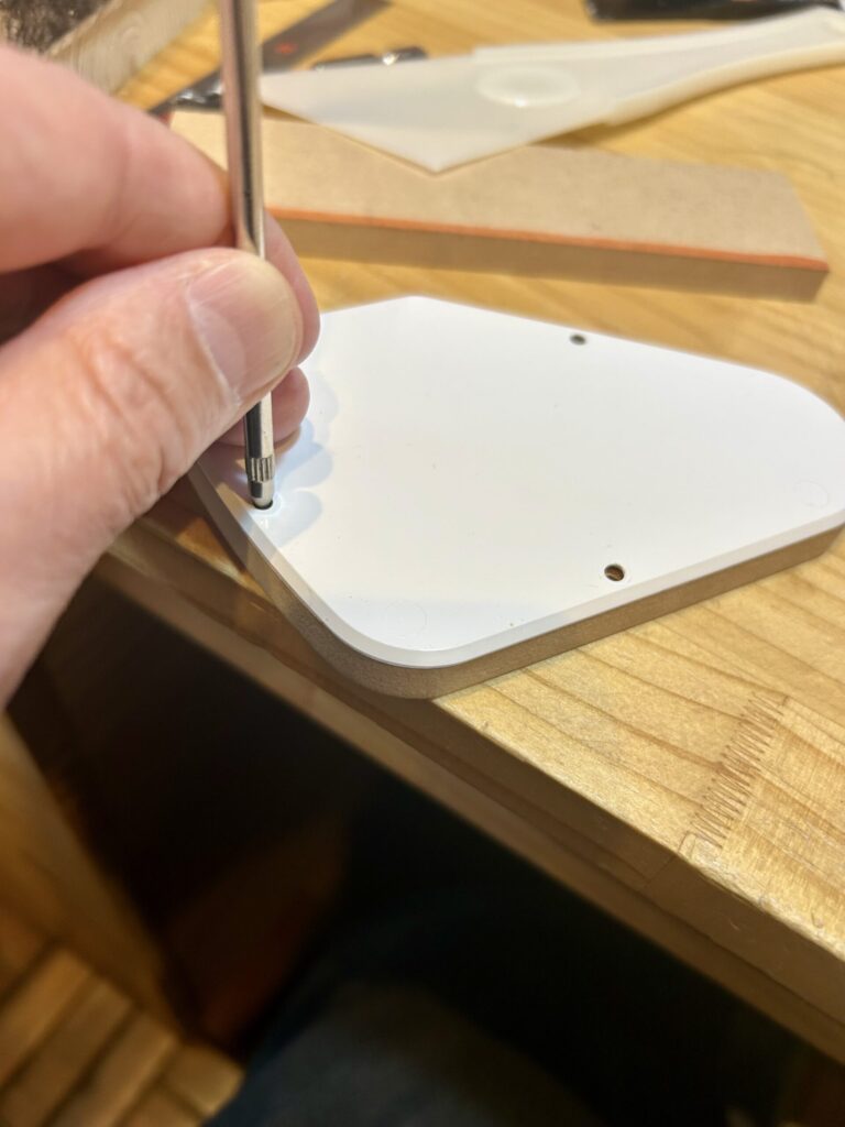 最後にネジ穴を開けます。