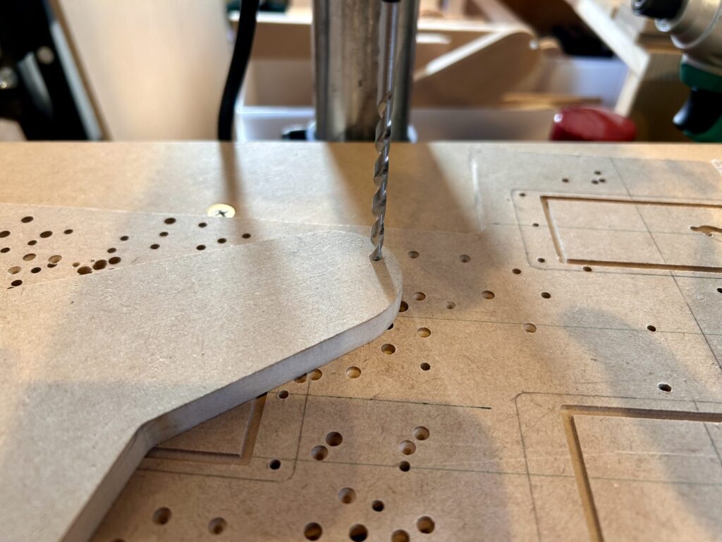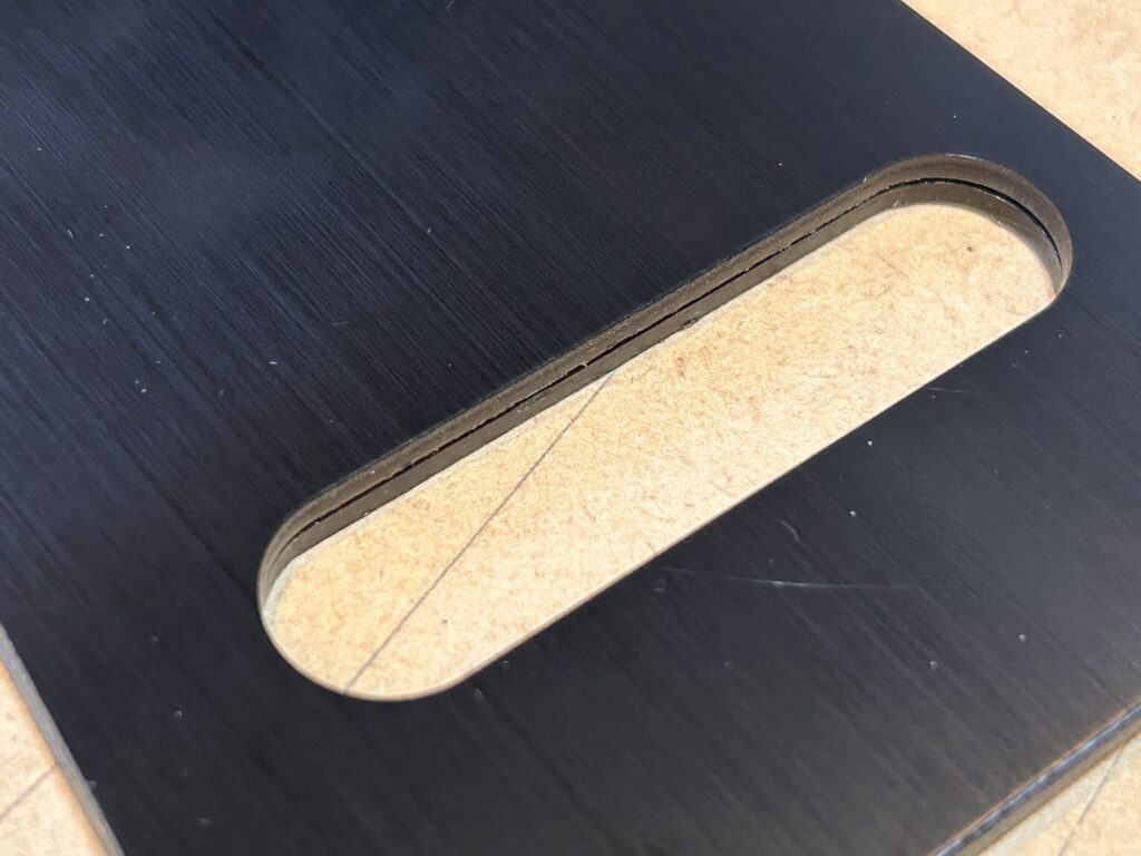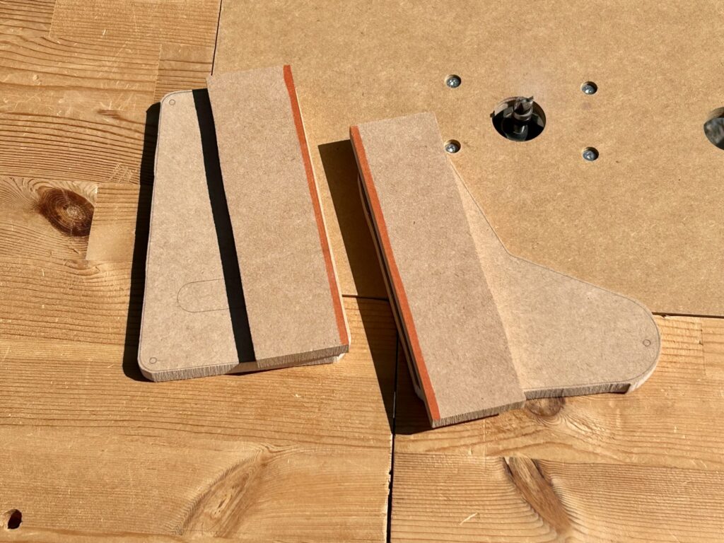 MDF板はカットが簡単で切りやすいので、バックプレートに限らず、そのほかのテンプレートやボール盤など工具の台の拡張に使ったり、使い方次第でとても便利な材料です。