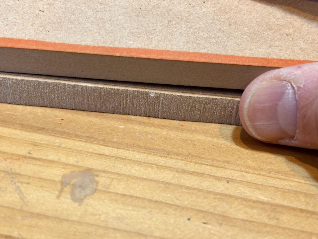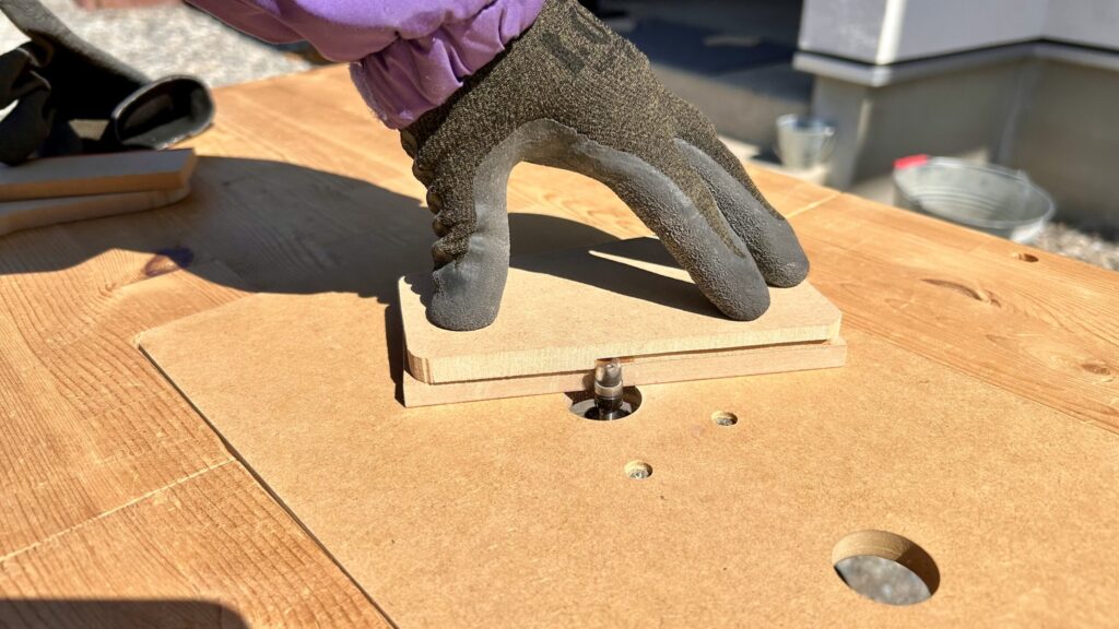 MDF板はトリマーの刃長に合わせて、厚さ9mmのものを使用します。