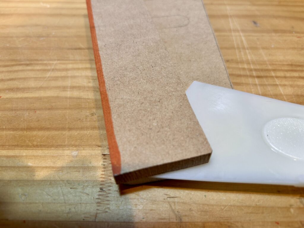 MDF板は柔らかいので、1回のカット幅は多めでも大丈夫です。