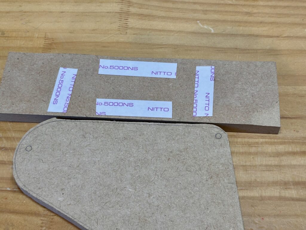 純正バックプレートをMDF板へトレースして、その線を頼りに作っていきます。