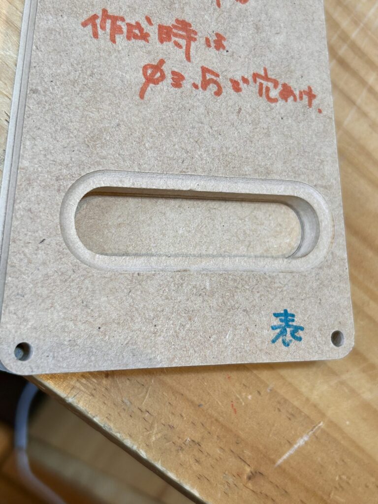 大きさに関しては直線カット後に比べてバッチリだったので、ここでは穴の位置を確認します。