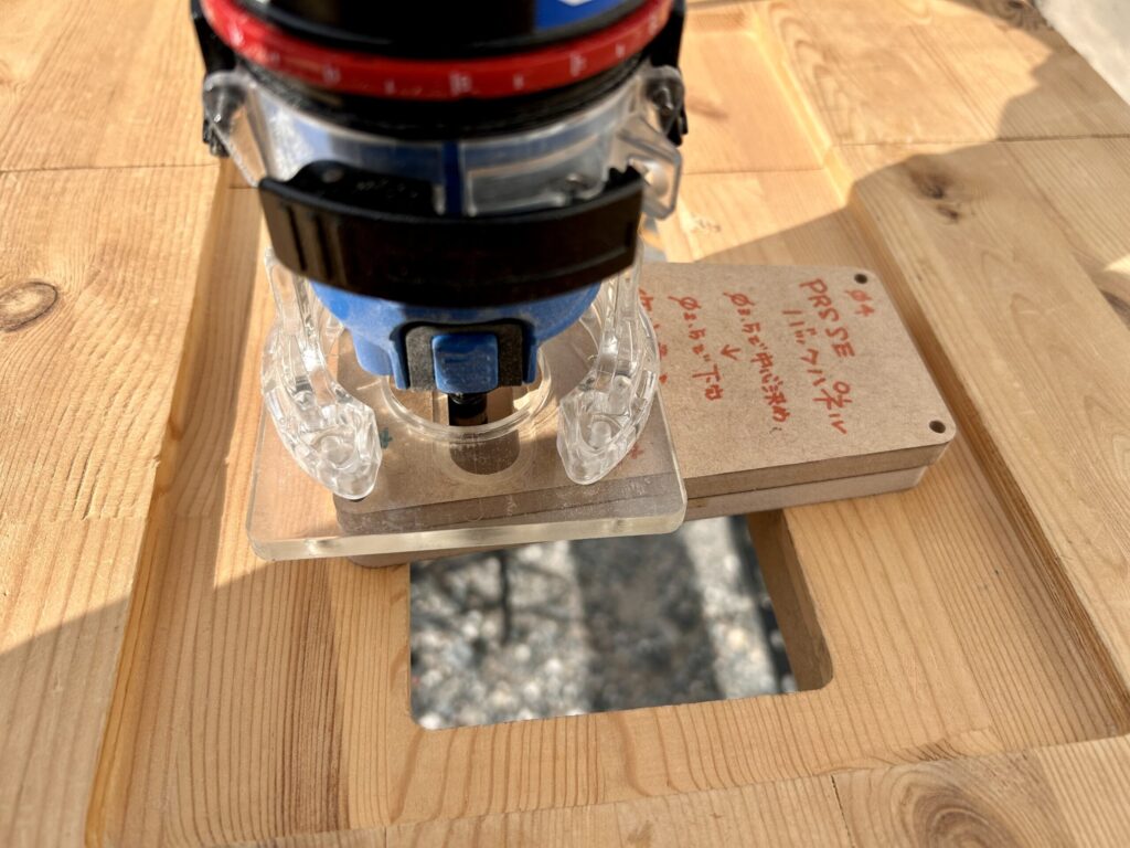 で、トリマーで2〜3mmずつ深さ調整してカットしていきました。