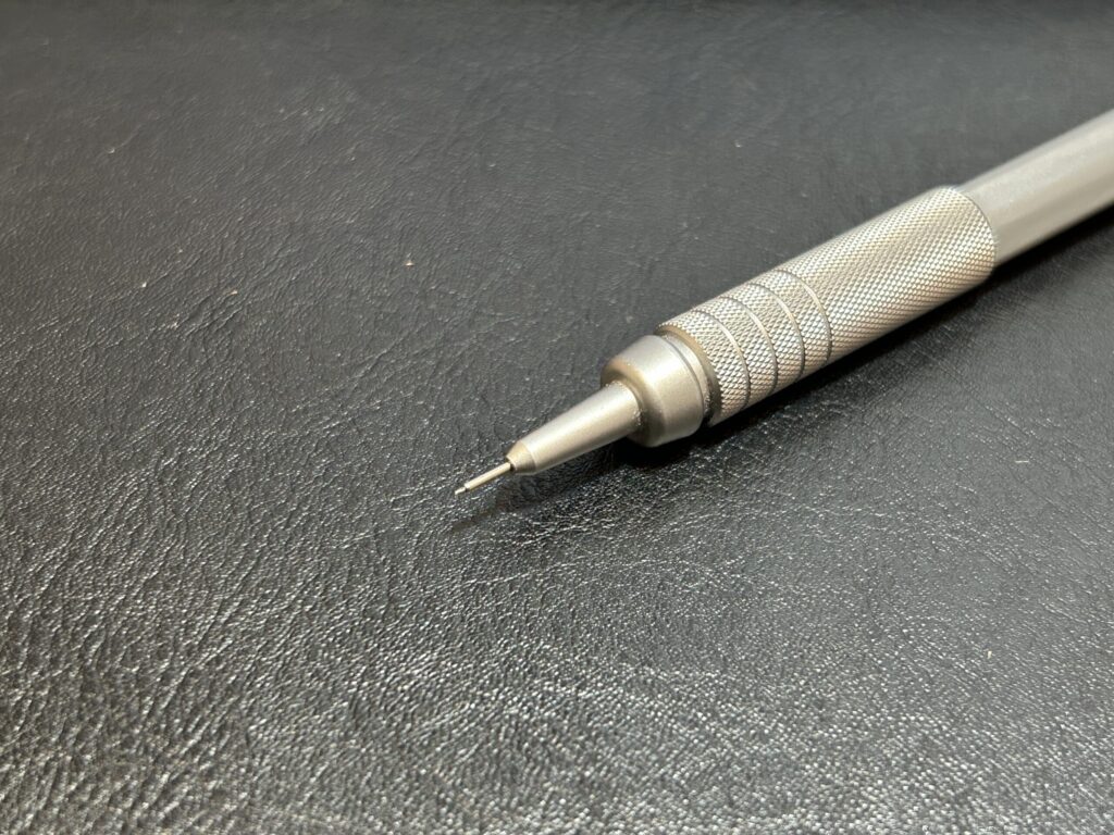 一般的なシャープペンだと、カーブの部分などは先端部分が当たってトレースの線が実物より膨らんでしまいがちなんですが、そういったことがなく大変使いやすいです。
