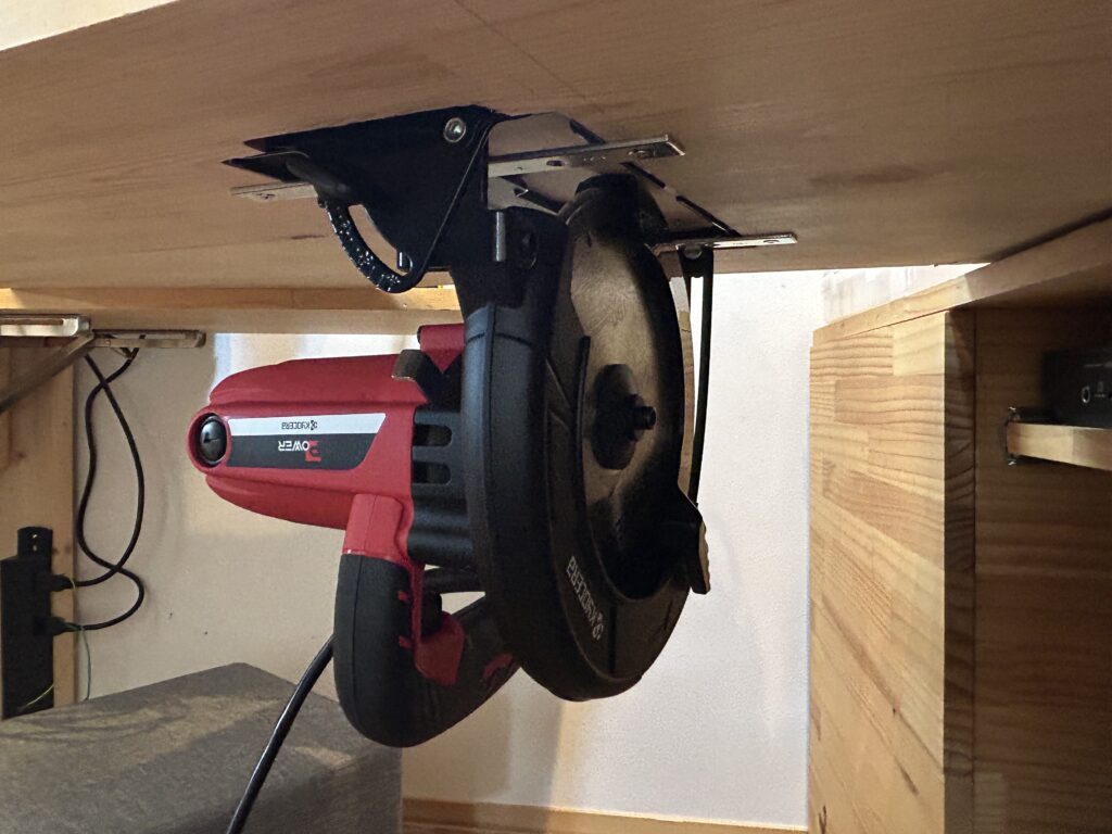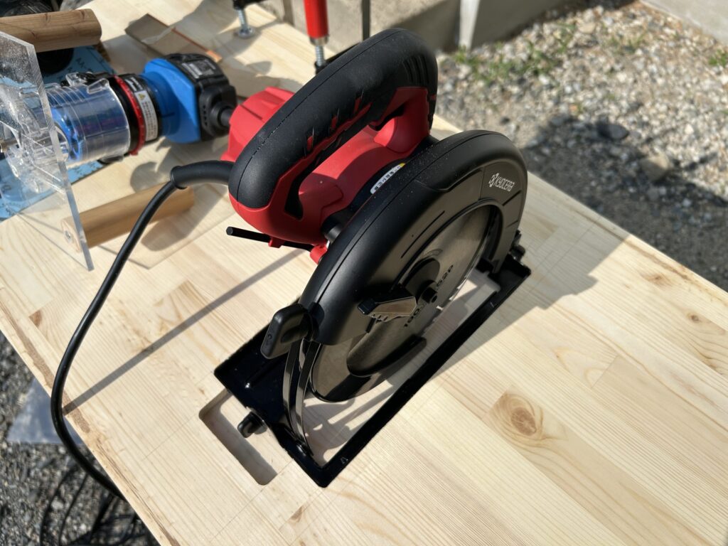 丸ノコはテーブルへ逆さに取り付けて使います。