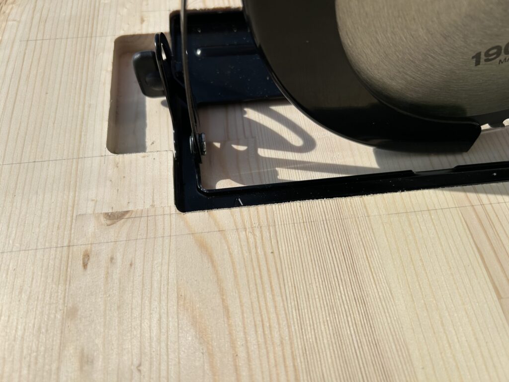 こうして丸ノコのベースをすっぽりはめ込むことができました。