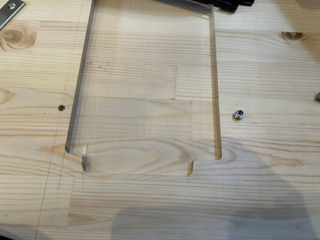 すぽっとはめ込めるようにしましたが、結局ネジで止めるため、ここは削らずとも省略可です。