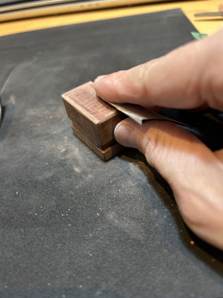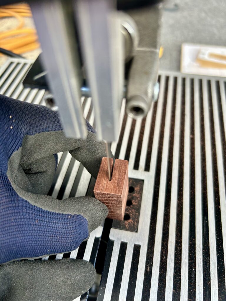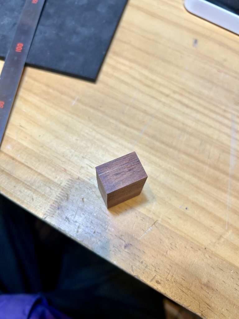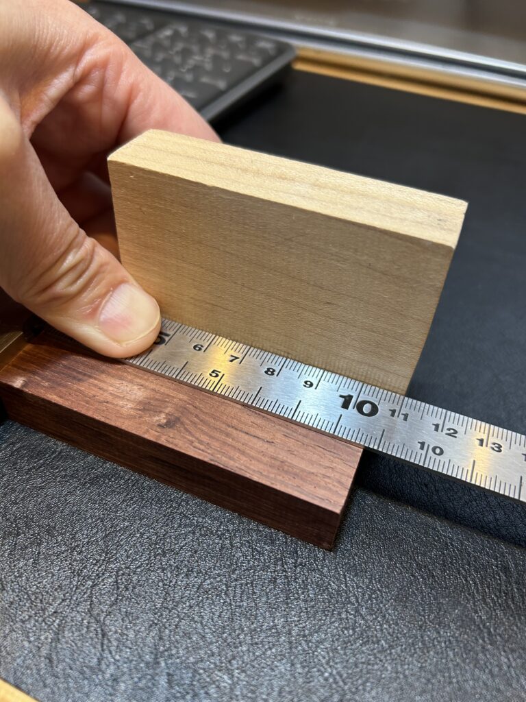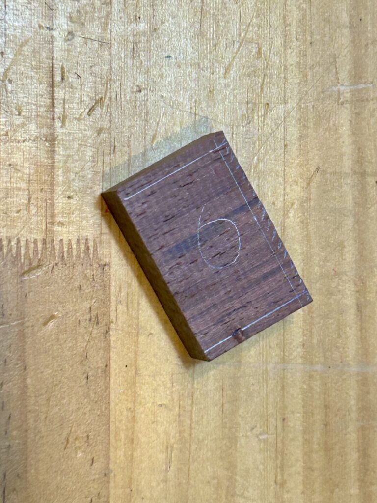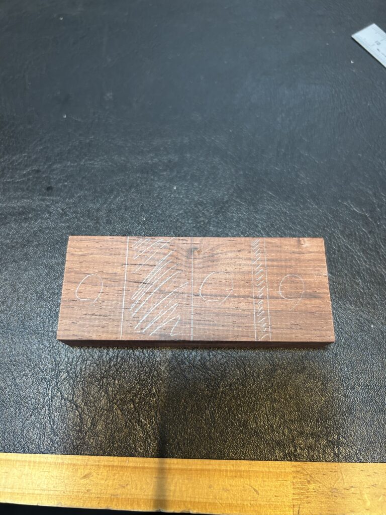 まずは手持ち部分を作るため、ホンジェラスローズウッドへ罫書きします。