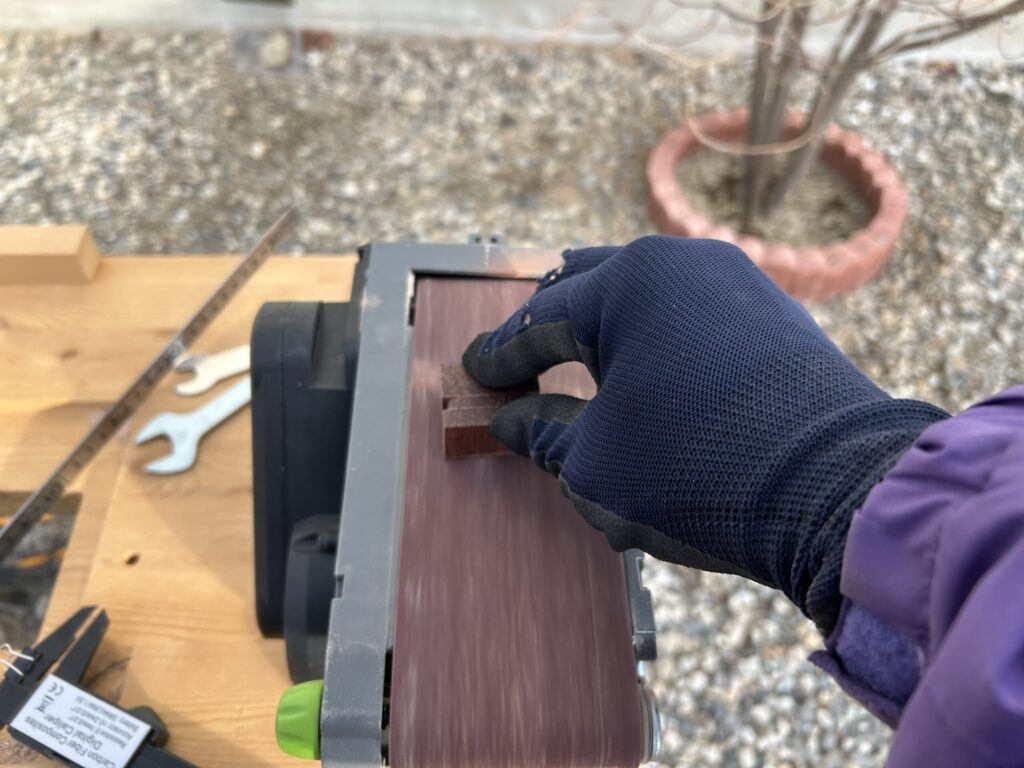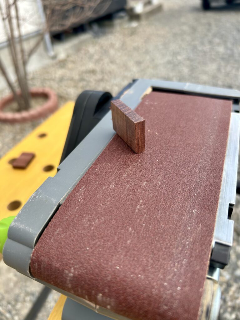 切り分けた他の材料もベルトサンダーで成形していきます。