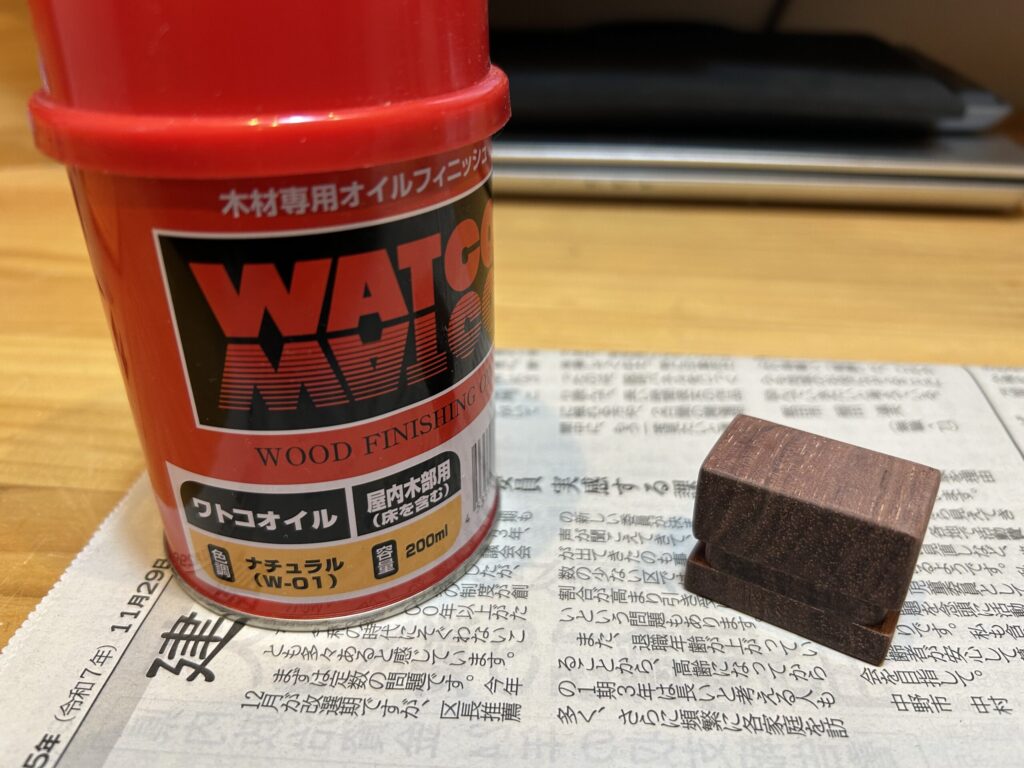 ワトコオイルは木工用品なんでもいけるので、ナチュラルを一つ常備しておくと材料の色を生かしたフィニッシュがいつでもできます。