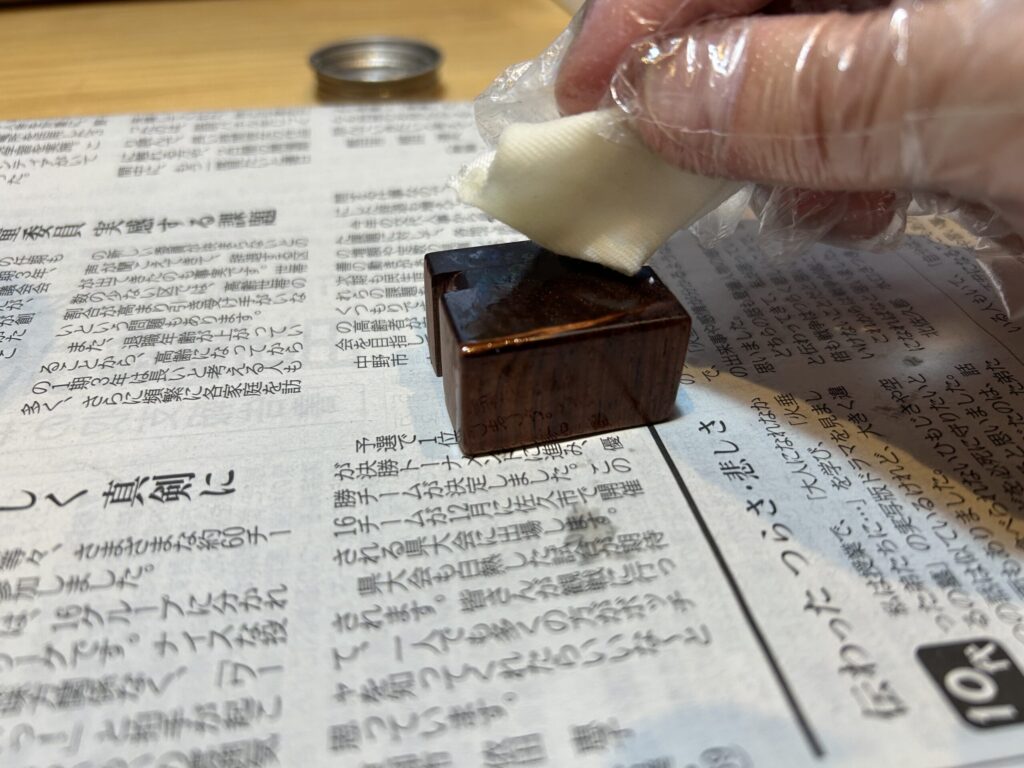 ただ、通常のオイルフィニッシュに比べて気を遣わなければならないのが、オイルを拭き取った時の拭き取跡。