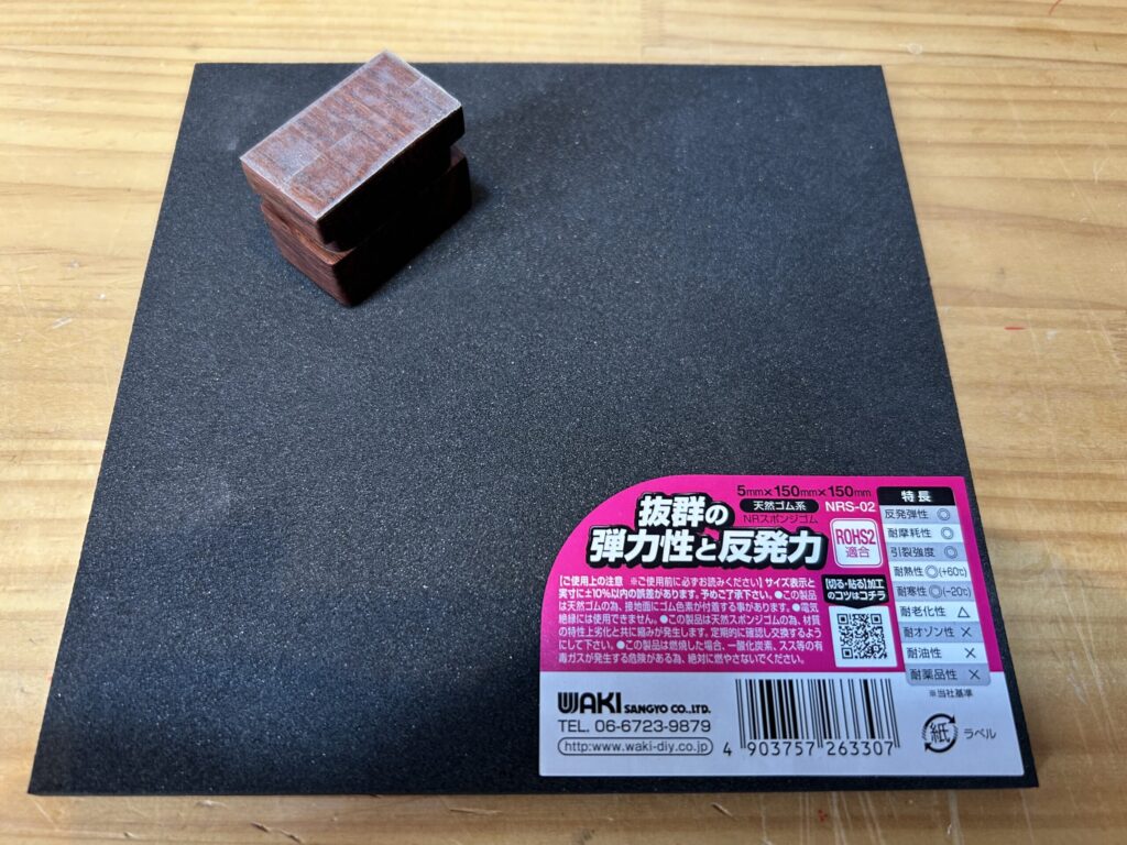 今回のようなブロックでの使用の他、オイル塗布や材料研磨の際のマットとして使うなど、私自身かなり愛用しているNRスポンジゴムです。