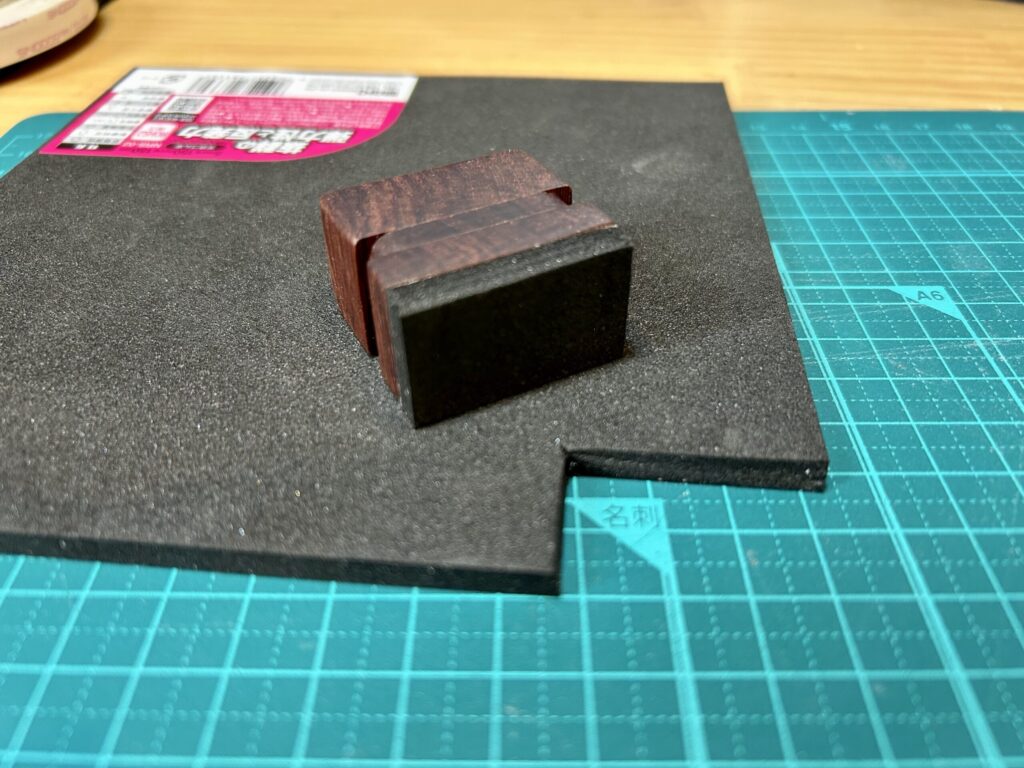 そこで、可能な限り均一な圧力でオイルを拭き取りるための当て板(以降ウエスブロックと呼びます)を使用し、上手に拭き取るわけですが、そのブロックを作ろうってのが今回です。